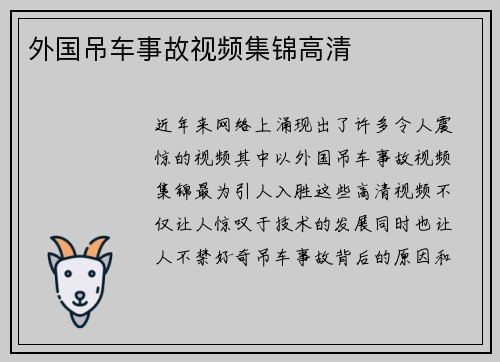 近年来,网络上涌现出了许多令人震惊的视频,其中以外国吊车事故视频集锦最为引人入胜。这些高清视频不仅让人惊叹于技术的发展,同时也让人不禁好奇吊车事故背后的原因和教训。