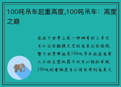 100吨吊车起重高度,100吨吊车:高度之巅